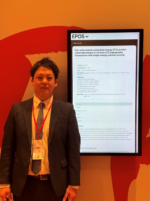 私の発表内容はdual energy CTを使った冠動脈石灰化の成分解析を行い、尿酸反応を認めた患者の基礎疾患、冠動脈CTで得られる情報(狭窄病変、プラーク病変)の関係をまとめたものになります。CTにおけるNext Generation としては、photon counting CTが注目されており、現在よりも高分解能な画像や、物質弁別能力の向上に期待されています。私の研究にも繋がる部分があるので、期待している装置ですが、現状ではまだ改善するべき点もあり、ブレイクスルーと呼べるほどではなかったように思います。まだまだ出てきたばかりですので、今後に期待したいと思います。